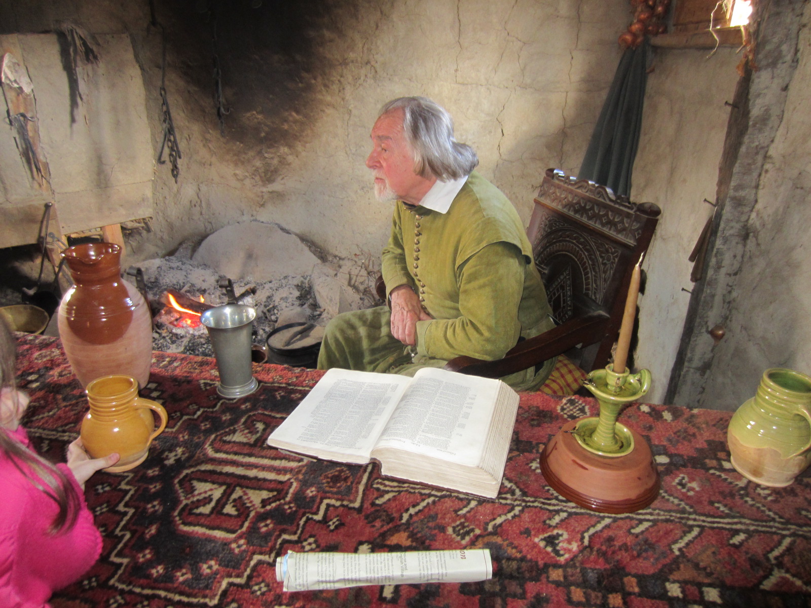 o celebrate Veteran’s Day, I chaperoned an annual field trip that my children’s school takes to Plimoth Plantation, in Plymouth, MA, a living history museum which seeks to recreate the atmosphere of the first permanent English settlement in the New World on a site very close to that of the original settlement. The school staff and I have an ongoing joke that we almost prefer to have real and deep conversations with these folks faking the seventeenth century over the usual trite and sometimes fake conversations we find ourselves having with the real (or at least living) people of the 21st century. What is it about our own sense of history which is so lacking that we have to pay actors to help us re-imagine the past?