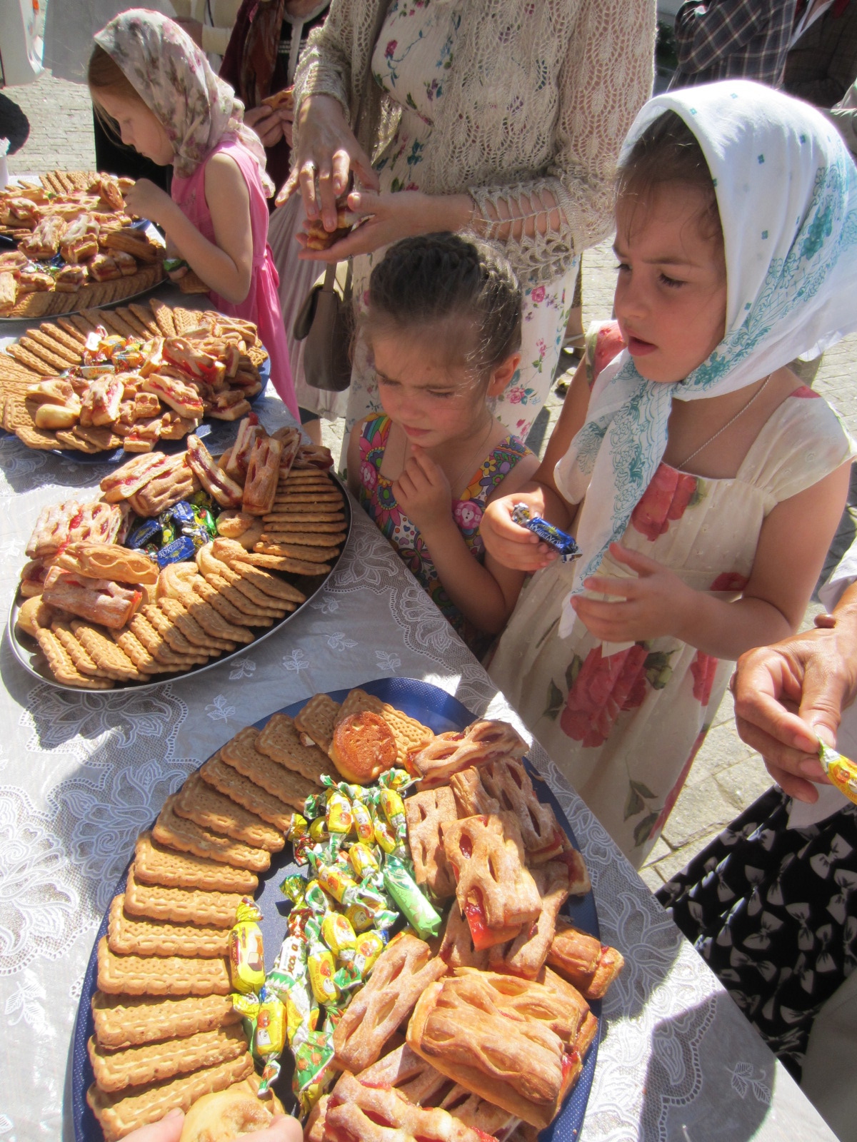In our own home parish in America, coffee hours are in competition with one another for the Best of Boston award in the unknown category of “church coffee hours”. Thanks in large part to the oversight of our presbyteras/popadias, there is always a full meal to last hungry faithful much more than an hour after service. Ours might be better labeled a “Coffee Afternoon” by the lengths to which many folks linger after Liturgy. But far from scattering the grace of the Liturgy, we think that such lingering allows the faithful to also bask in the grace of the Church. When the people of God gather for sup in the house of God rather than dispersing to area restaurants, something of divine grace is better preserved.