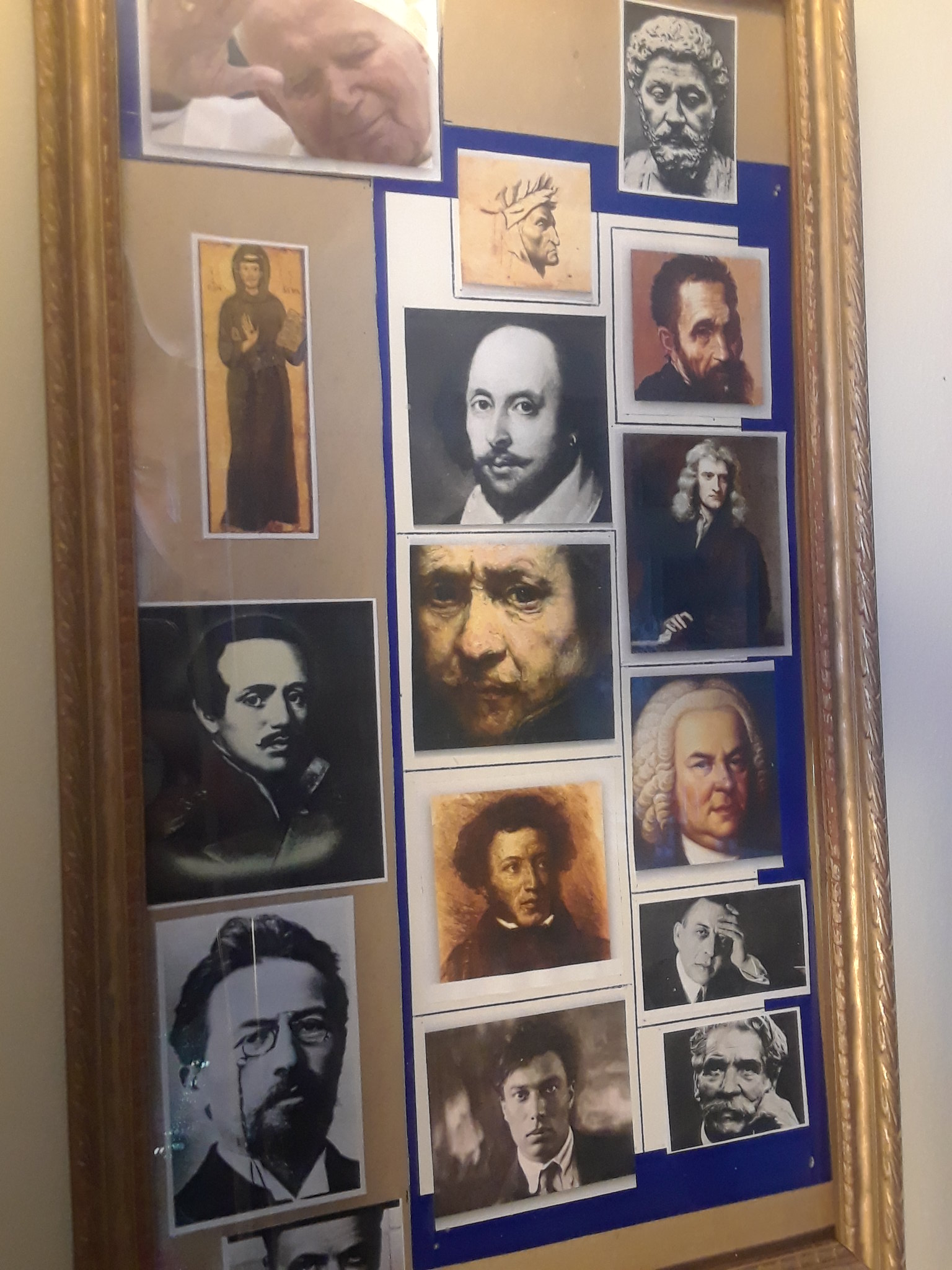 We take almost all of our children to sing a few simple Russian Christmas carols. In exchange, we are given inexpensive Christmas ornaments that are imbued with grace as if made in heaven. The wife is an artist and arranges her home in a way that gives grace to every humble item in it. The husband is a writer, a serious thinker, who has left behind a precious treasury of reflections on literature, history, and theology. If only I could read Russian, but just being in his now wordless presence is enough to communicate volumes.
