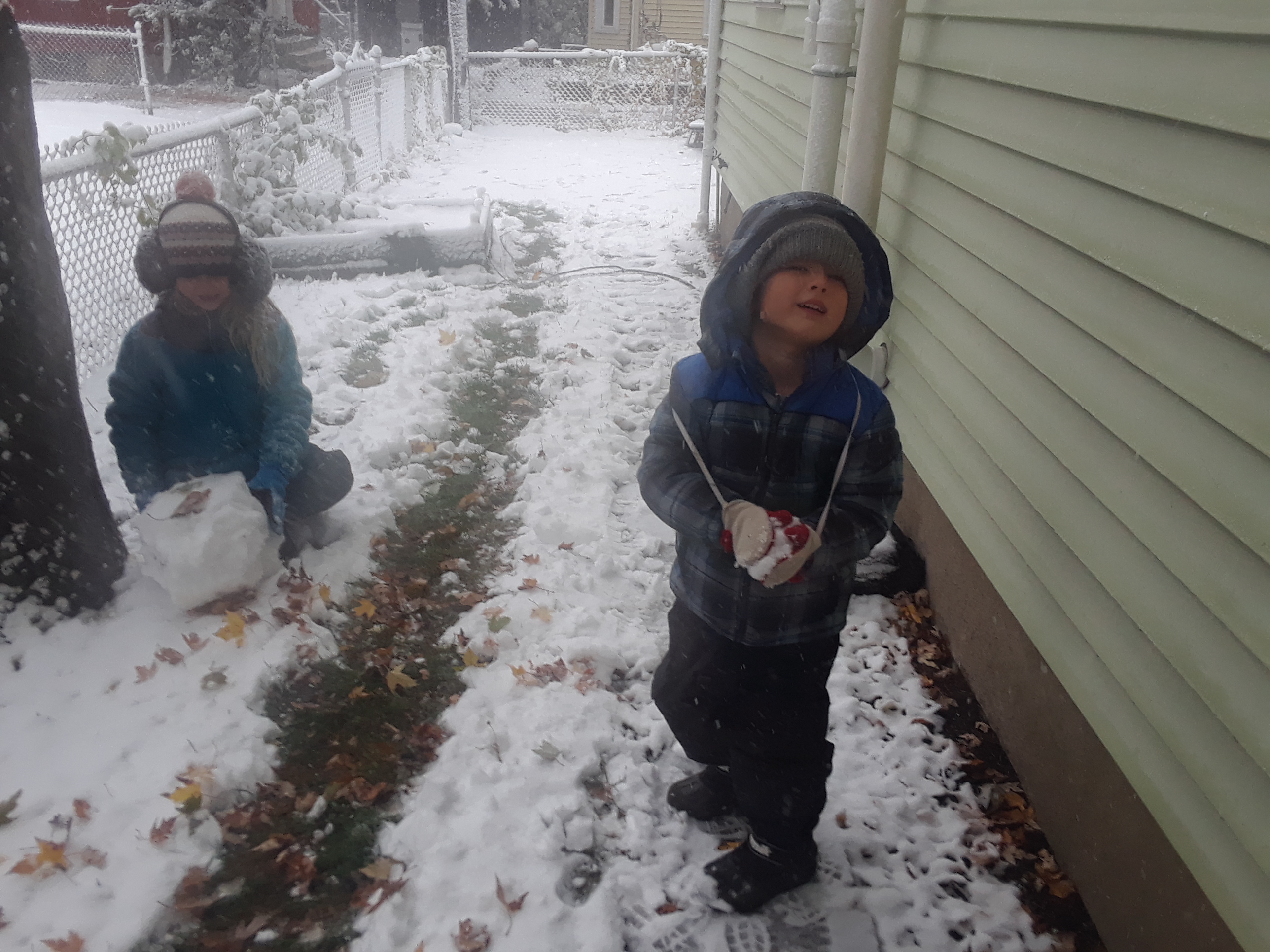 Nothing is as magical this time of year as the first serious snowfall. Our kids took full advantage of the 3 plus inches of snow that fell and lingered for at least a day. We parents are blessed that the usual difficulty of getting the tikes outside to breath fresh air is no longer a chore. They literally chomp at the bit to get on gloves, hats, scarves, boots and be rollicking in fluffy white creations of their own design. Here is just a sample of the fun!