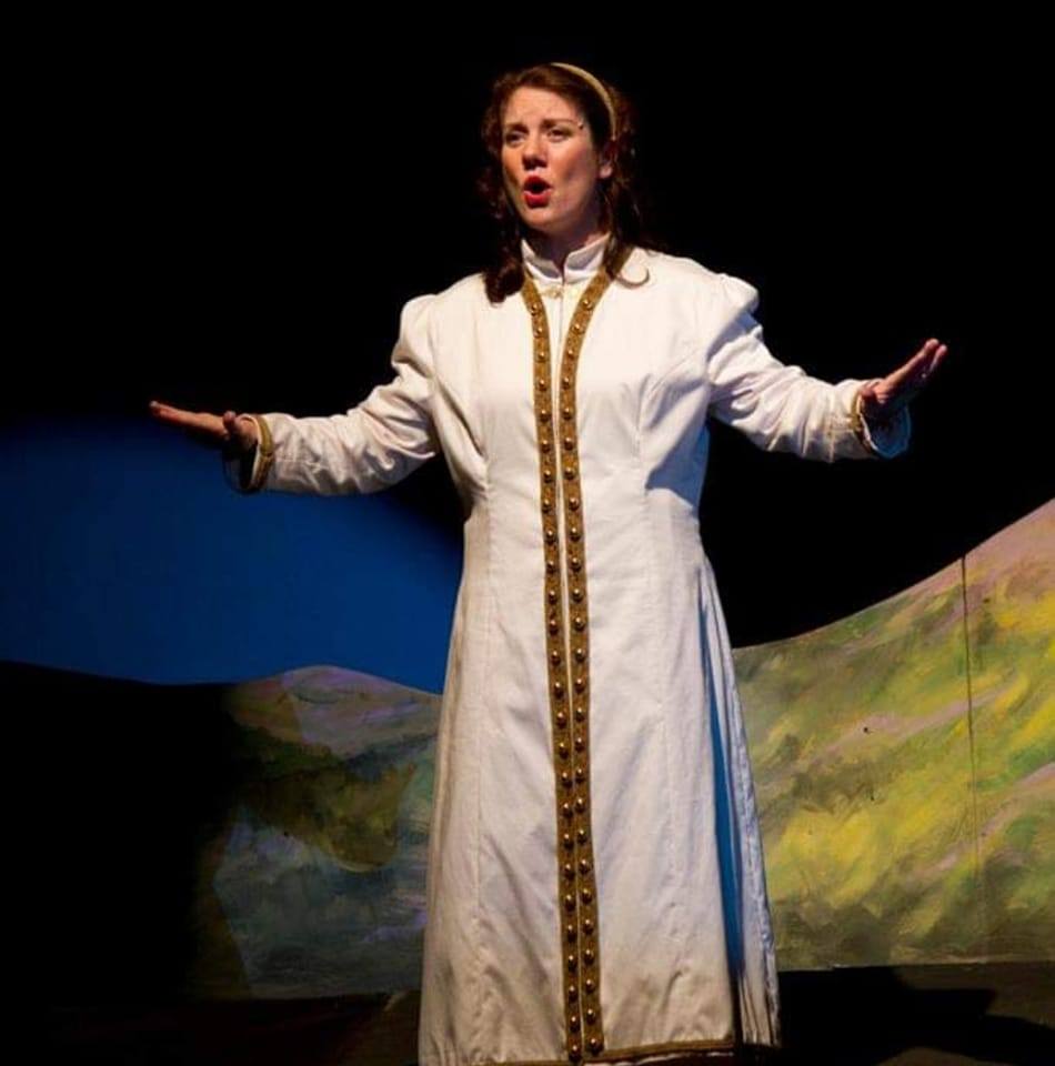 Among the many friends who help Pilgrim on his journey is one whose supernatural assistance comes at just the right moments of need. The aptly named character Help, whom the director has always cast as a woman, reminds Pilgrim of divine aid and herself provides such assistance in the Lord of the Celestial City’s name. She is for me a symbol of the Most Holy Mother of God, the Blessed Virgin Mary, who is called by the Church Queen of the Heavenly Hosts and the Directress leading all pilgrims to her Son, the Lord Jesus Christ. And this is not just because the character is a woman, for she is not just any woman, this Help. She combines within herself a motherly tenderness along with a fierce, even manly minded stance against evil. Though I suspect some may object to this comparison of Help with the Blessed Virgin Mother, one thing is clear about the presence and power of Help in MacAdam’s musical: the role Help plays in Pilgrim’s salvation is not a mere morality tale of struggle for virtue in this world, but a struggle against, “… principalities, against powers, against rulers of the darkness of this world, against spiritual wickedness in high places.” (Ephesians 6:12) Here is a sample of her otherworldly power as Pilgrim witnesses the martyrdom of his companion and then hears Help’s duet battle with arch-enemy Apollyon:
