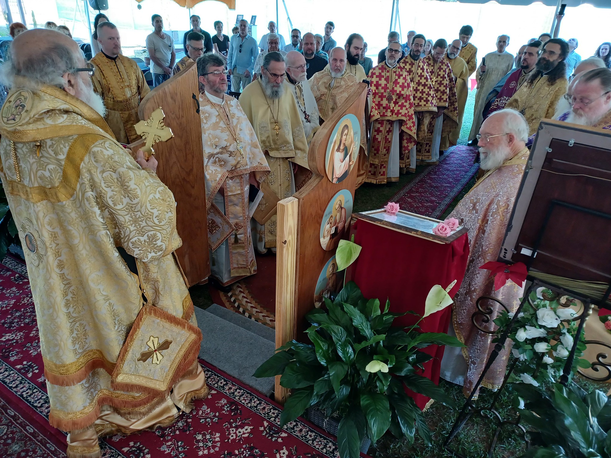 The clergy from our Diocese hail from all different parts of the country and different ethnic backgrounds, but at St. George’s, we are ONE in Christ. And the parishioners of this young and eager parish make a home away from home for us as we conduct our spiritual pilgrimage. The lively, tender spirit of their otche (“little father”) fills every colorful corner of their modest compound. The tiny indoor chapel spills out to several auxiliary trailers, patios, shelters, and one large, outdoor tabernacle. These good-hearted, generous people prepared three weeks for our coming and now run to and fro, attending to every need that arises.