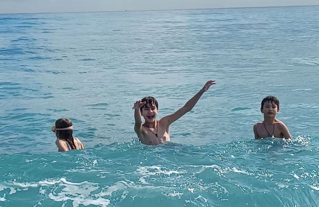 As we said our evening prayers before the icons of our heavenly helpers, I encouraged the children to stop complaining to me and to turn to someone who could do something about it. This morning, we were treated to an unexpected blessing. Though the forecast promised only clouds and 70, that indomitable Florida sunshine broke through and, combined with the glorious Florida humidity, it produced conditions ideal for breaking through surf and breathing in fresh salt sea air.