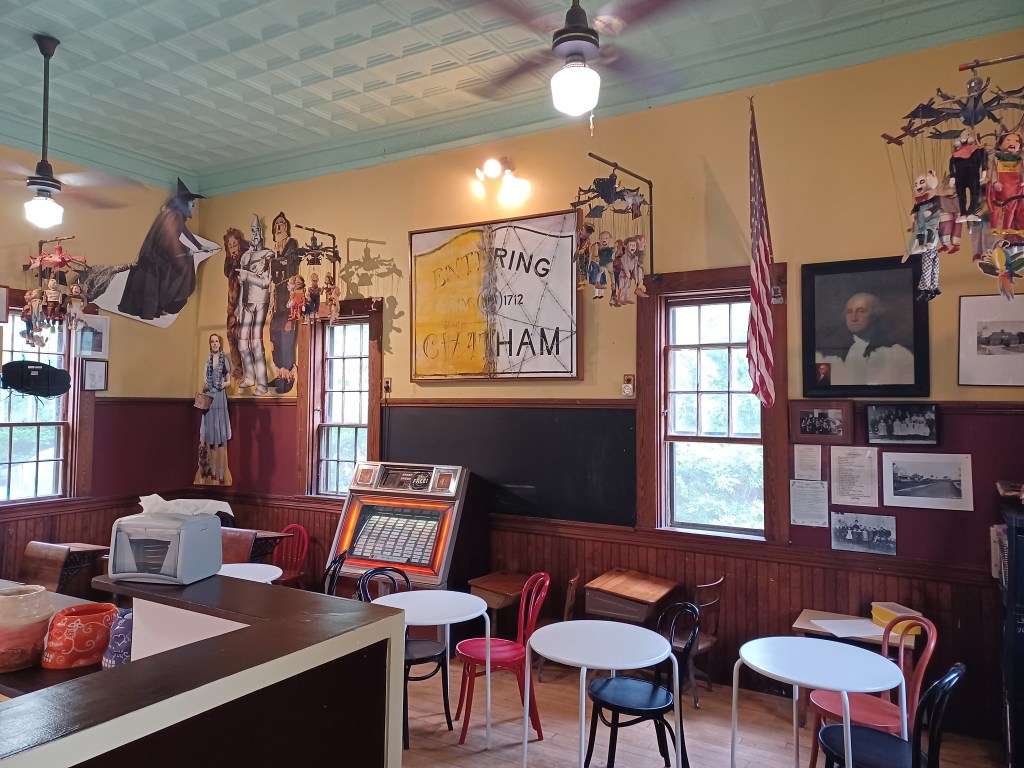 The shop is housed in a historic two room Chatham schoolhouse. Old fashioned desks serve now as tables and a free jukebox plays old 45 vinyl records with songs from decades long ago. My children are amazed at the industry of the family who owns this business and make connections to their own start up endeavors at a lemonade stand where we live. Now in its 35th season, Short and Sweet is more than a place to rest from biking; it is for us a nostalgic oasis of memory.