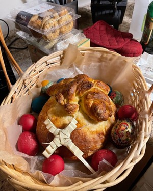 Hello! I am so excited to be a guest here on this platform. Please feel free to comment or reach out. I’d love to hear from you! I have an extensive number of topics to blab about: being a Christian, mom of three boys on a homeschooling journey, but I thought it would be most appropriate and recommended by my friend that I write about Pascha. Below is my very first Pascha basket! I dyed the eggs with my children, baked the Pascha bread which I learned is a Russian and Ukrainian tradition, amongst other European countries. I added in my culture’s famous cookies (Lebanese & Syrian) later. It is truly a beautiful season to honor our Lord while making memories with friends and family of Christ.
